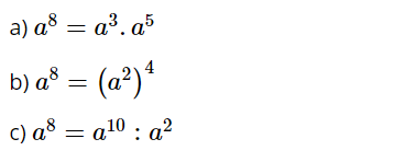 1.34. Cho a∈ℚ">a∈Qa∈ℚ và a ≠0. Hãy viết \(a^{8}\) dưới dạng: